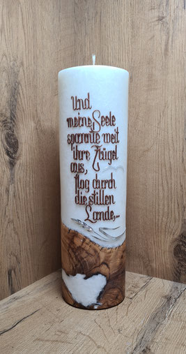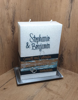 Die Hochzeitskerze ist ein wichtiger Bestandteil jeder Trauung. Gerne gestalte ich eure ganz persönliche Kerze nach euren Vorgaben, oder personalisiere eine Kerze aus meinem Shop.